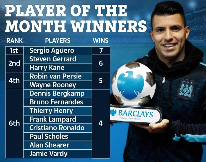 费尔南德斯接下来可冲击的,是曼城射手阿奎罗保持的7次得奖最高次数纪录,他需要首先超越杰拉德和哈里·凯恩,两人都是6次获奖,领先于他的还有曼联前辈鲁尼和范佩西,他们5次得奖并列第4位。