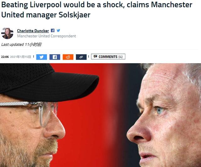曼联自2017年4月以来就没有在联赛客场击败过利物浦,对此索尔斯克亚说道:“如果你看过过去几个赛季的数据,那么我认为我们击败利物浦将是属于爆冷,会让人们震惊。”