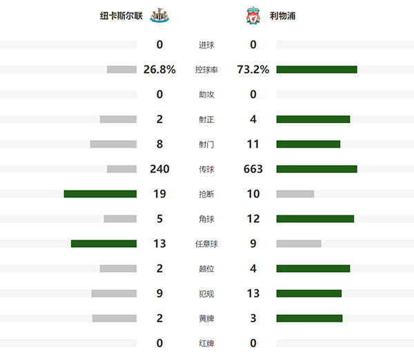 查看:纽卡斯尔vs利物浦 全场录像技术统计: