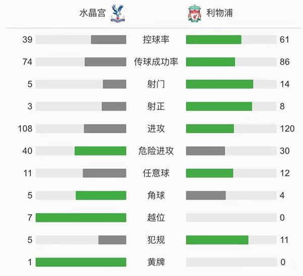查看:水晶宫vs利物浦 全场录像 技术统计: