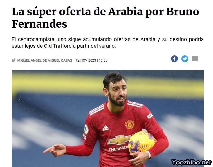 JRS直播网11月14日据西班牙媒体fichajes报道,多家沙特阿拉伯俱乐部有意签下曼联队长布鲁诺-费尔南德斯,并准备为这位葡萄牙人支付1亿欧元的转会费。