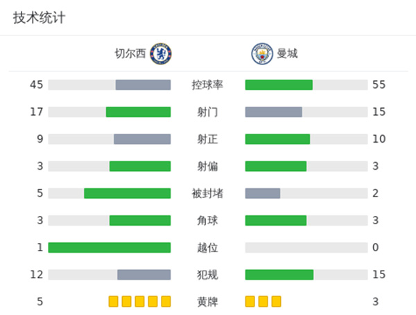 第46分钟,B席禁区外传中,阿坎吉读秒头球扳平比分,切尔西2-2曼城!