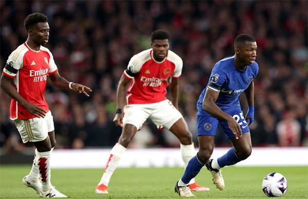 若日尼奥、津琴科、热苏斯、马丁内利、法比奥-维埃拉等人替补登场。切尔西伤病频发,福法纳、里斯-詹姆斯、拉维亚、恩昆库、科尔威尔、奇尔韦尔等人均伤缺,主帅波切蒂诺亮出4231阵型,雅克松、穆德里克、凯塞多、恩佐等人领衔首发。阵容身价4.17亿欧元。比赛中,阿森纳攻势如潮,直接压制切尔西,比赛第4分钟,赖斯快攻助攻特罗萨德完成禁区内小角度爆射破门,阿森纳取得梦幻开局,1-0领先。