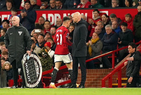 JRS直播网讯 在曼联与英超副班长谢菲联的比赛中,因为拉什福德伤缺,1亿欧元边锋安东尼难得重回首发阵容。然而,这位24岁巴西国脚再次令人失望,表现全队最差,滕哈格下半场开始没多久就将他换下。在安东尼离场时,老特拉福德主场球迷发出了喝彩声,这说明了一切。