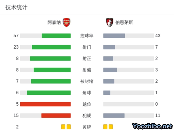 第45分钟,萨卡主罚点球,他骗过特拉弗斯低射命中,阿森纳1-0伯恩茅斯。