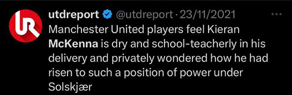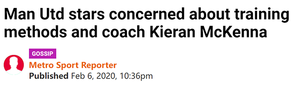 英媒曾经报道,当年一些曼联球星对麦肯纳在卡林顿安排的训练很不满意,认为练习太基础(too basic),故此觉得其水平很菜,缺乏经验,不堪大任。但现在他完成了英格兰足球近年来最励志的故事之一,下赛季进入英超,将直接挑战曼联。如果能击败红魔,并留在顶级联赛,麦肯纳将足以证明当年红魔球员的看法是错误的,低水平的是他们,而不是自己的训练。