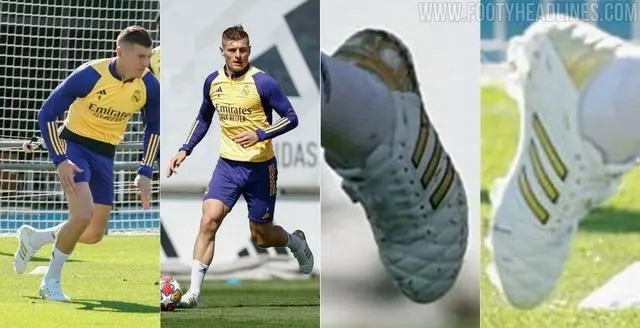 克罗斯一直穿着一双白蓝配色的阿迪达斯Adipure 11Pro足球鞋,而在最近的一次训练中,克罗斯穿了一双白金配色的阿迪达斯Adipure 11Pro足球鞋。
