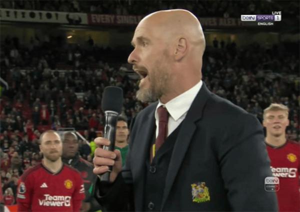 JRS直播网讯 在北京时间5月16日凌晨结束的英超第34轮一场补赛中,曼联3-2力挫纽卡斯尔,成功用一场胜利为本赛季主场收官。而赛后,曼联主帅滕哈格也来到老特拉福德球场的中央,进行了一番慷慨激昂的致辞。