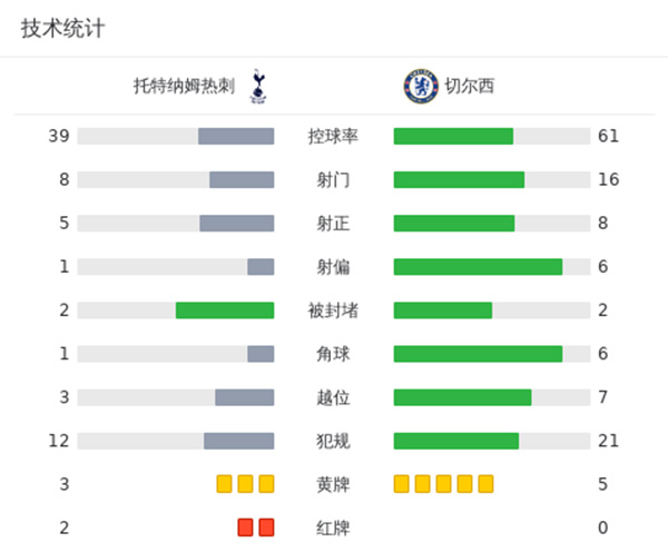 最终切尔西客场4-1逆转9人热刺,热刺遭遇联赛首败。