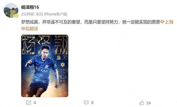 而杨泽翔本人也在入选国足名单后,第一时间在社媒动情发文:“梦想成真,并非遥不可及的奢望,而是只要坚持努力,就一定能实现的愿景!”