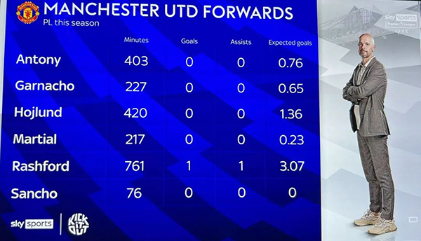 自从夏窗从亚特兰大转会加盟以来,霍伊伦德还没有在英超联赛中取得过进球,而除了刚加盟后养伤期间外,丹麦20岁前锋一直都是滕哈格的主力中锋。这让他的表现,遭到了一定的质疑。有球迷嘲讽霍伊伦德是「007」,7场英超0入球、0助攻,但这个绰号不会长期存在,因为他的数据已经变成了「008」。