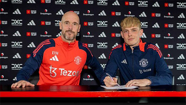 2023年2月,17岁的梅诺续约时,滕哈格坐在他身边。2023年4月,加纳乔续签时,滕哈格也同样这么做。现在,则轮到了科利尔。梅诺和加纳乔都为曼联做出了显著贡献,上赛季足总杯夺冠就靠两人进球,滕哈格现在可能希望科利尔也能这么做。