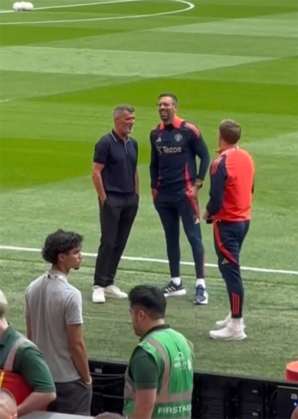 JRS直播网讯 在社区盾赛后,曼联和曼城走向各自的球队大巴时,戴着眼镜的范尼斯特鲁伊停下来,与荷兰同胞内森·阿克进行了长时间的交谈。尽管后者是曼城球员,但两人边聊边看起来很放松,范尼穿着曼联教练运动服,笑容温暖。