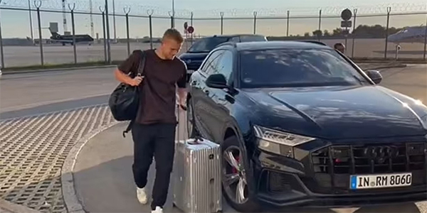 相关视频显示,两名后卫满面笑容地坐在私人汽车里走向停机坪。德里赫特独自走进候机楼,背着一个大帆布背包和一个更大的手提箱。这天还是他的25岁生日,拜仁在其离别之际通过社媒账号祝他生日快乐。在面对德媒的镜头时,德里赫特表示没时间多说:「努塞尔(马兹拉维)正在等着我。」