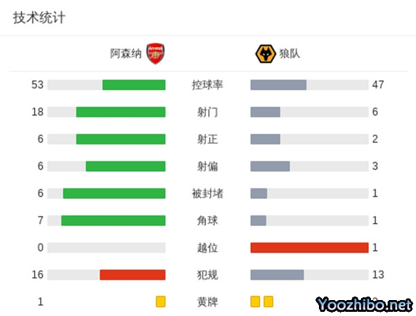 第73分钟,哈弗茨带球推进后传给萨卡,萨卡闪开空档抽射近角得手,阿森纳2-0狼队。
