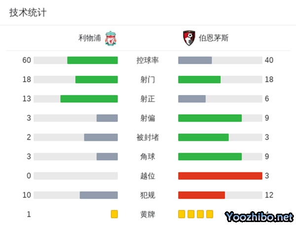 最终,利物浦3-0完胜伯恩茅斯。