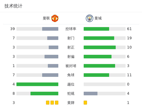 最终全场比赛结束,最终曼城3-0战胜曼联!