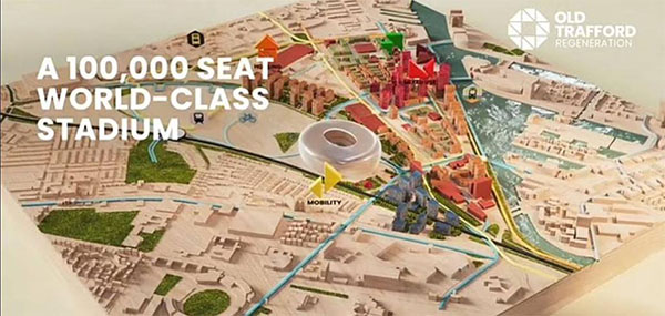 JRS直播网讯 曼联本周一在利物浦举行的工党大会上公开了「特拉福德公园」改造计划,其中包括一座价值20亿英镑、可容纳10万人的最先进球场,不仅有利于俱乐部,甚至可能会为英国经济带来巨大增长。「不单纯是一座球场。」是曼联宏大计划的口号。