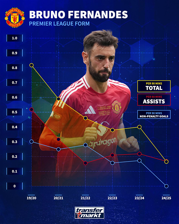 数据显示,过去几年B费的状态确实正在下滑,他的冒险打法在滕哈格想要曼联采用的传控战术体系中,是一把双刃剑。如果他状态好,可能摧毁对手;但若是发挥低迷,则可能让本队付出高昂的代价。