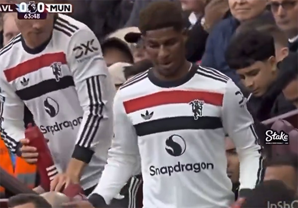 JRS直播网讯 曼联周日在阿斯顿维拉拿到了一分,拉什福德可能是唯一有威胁的前锋,他上下半场各有一次射门考验了维拉门将大马丁。然而,他踢了一小时左右就被安东尼换下。走上替补席时,26岁的拉师傅口中念念有词,不需要唇语专家,大多数人都可以看出红魔妖星说的是:「他疯了(he's gone mad)。」