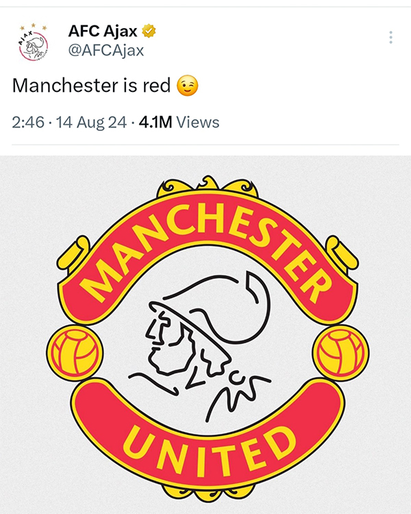 自从执教曼联后,滕哈格就养成了买下阿贾克斯旧将的习惯,两年多时间内,他签下了不少于5名这样的球员:德里赫特、马兹拉维、安德烈·奥纳纳、利桑德罗·马丁内斯和安东尼,曼联总共花费了2.22亿英镑转会费。这是如此显而易见,阿贾克斯官方都曾拿此事开玩笑。