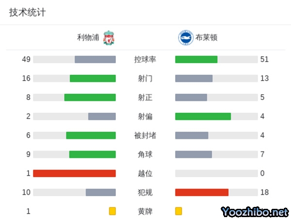 最终利物浦2-1逆转布莱顿登顶榜首2分领跑。