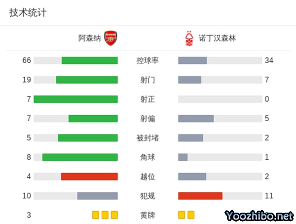 最终阿森纳主场3-0完胜诺丁汉森林!