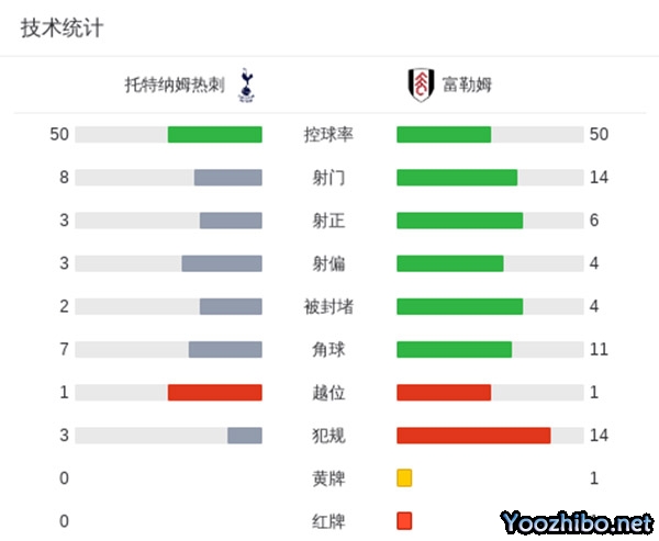 最终,热刺主场1-1战平富勒姆。
