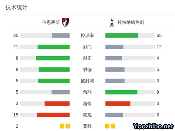 最终热刺0-1伯恩茅斯两轮不胜居第10。