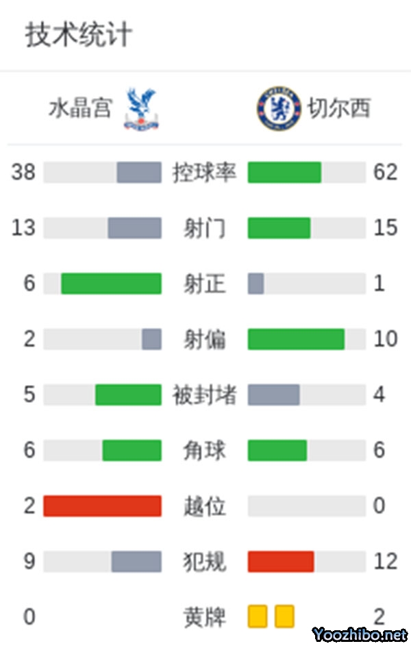 切尔西1-1水晶宫跌至第4 帕尔默破门内托禁区倒地未判
