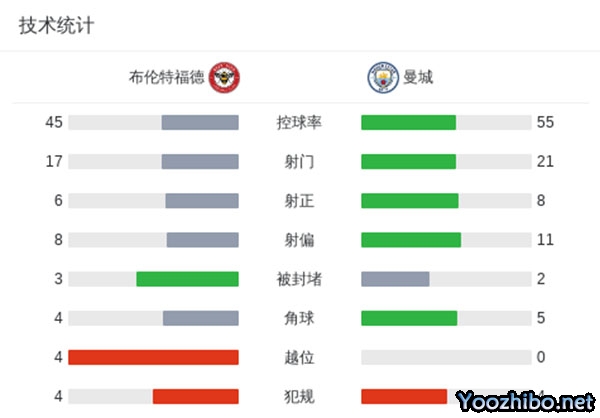 最终,曼城2-2客平布伦特福德。
