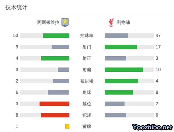 最终利物浦2-2战平维拉,先赛一场8分领跑积分榜。