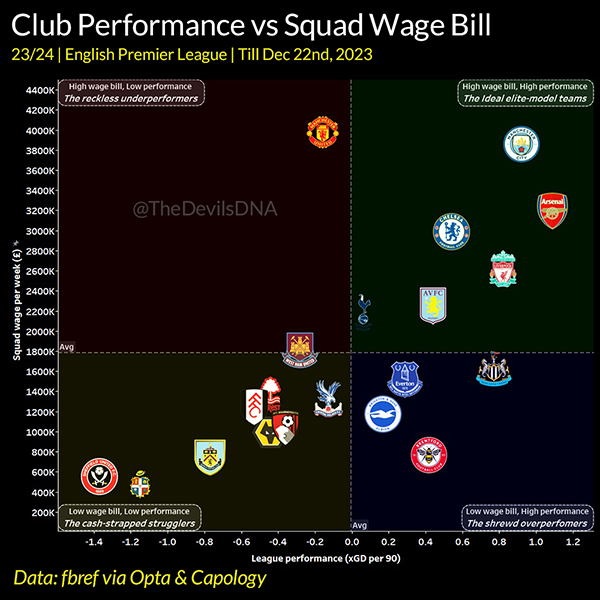 抛开曼联裁员对错不提,拉爵和管理层更重要的任务是确保自己别再失误,需要改善转会买卖的水平,以及降低球员的不合理收入。在第二个环节,拉爵也有显著错误,他加薪续约了队长布鲁诺·费尔南德斯,后者的周薪提高到30万英镑以上。一项专业调查显示,在英超豪门中,只有曼联球员工资最高,而表现却低于合格线!