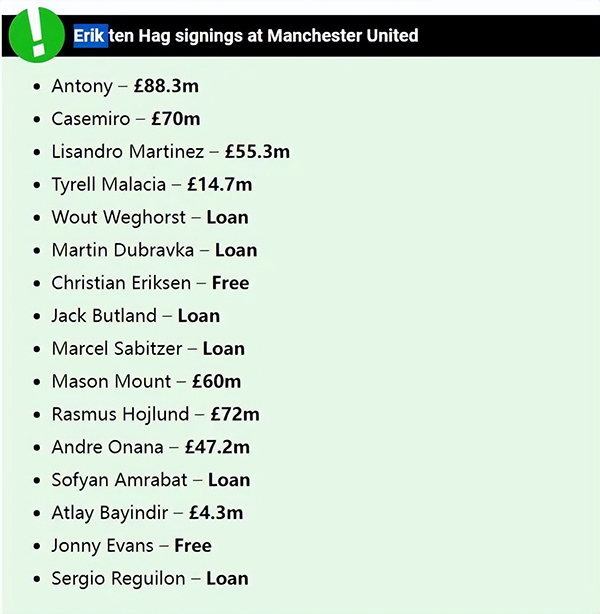JRS直播网10月11日讯 曼联本赛季开局不佳,红魔目前在英超积分榜上排名第十,在欧冠小组中垫底。自去年夏天执掌红魔以来,53岁的滕哈格已经获得了大量资金。数据显示,他已经豪掷4.07亿英镑买人,而这个金额还将继续提升。据悉,荷兰人现在打算再次补强边锋位置,两名日本球员已经进入他的选择范围,布莱顿的三笘薰或者皇家社会的久保建英,都可能成为桑乔替代者。