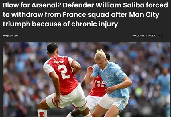 JRS直播网10月09日讯阿森纳后卫威廉-萨利巴因在阿森纳1-0战胜曼城的比赛中脚趾受伤而退出了法国队。