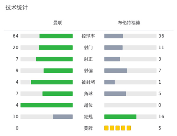 关键事件: 第26分钟,卡塞米罗传球失误,布伦特福德中场抢断发起反击,曼联禁区内解围没有完全清除危险,延森得球左脚低射,这球碰到防守球员有一点变线,奥纳纳扑了一下还是没能阻止此球入网,布伦特福德0-1曼联。
