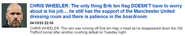 滕哈格仍有机会平息质疑,只要周六主场击败布伦特福德,然后在国际比赛日重新调整,他的处境仍然可以改变。有不少球迷已经把他视作「滕嗨」,但仍有尊其为「滕圣」的群体。