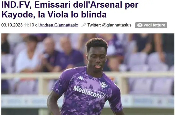 JRS直播网10月04日讯 据佛罗伦萨当地媒体Firenze Viola报道,阿森纳正在关注佛罗伦萨后卫米夏埃尔-卡约德的进步。