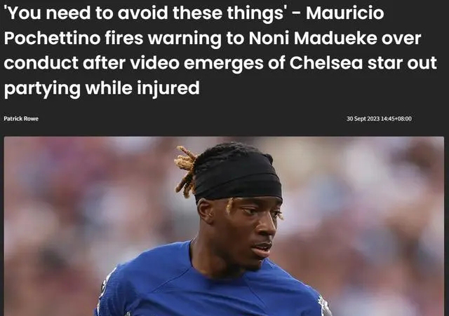 JRS直播网09月30日讯 莫里西奥-波切蒂诺向切尔西边锋诺尼-马杜埃克发出警告,有视频显示他在受伤的情况下仍参加派对。