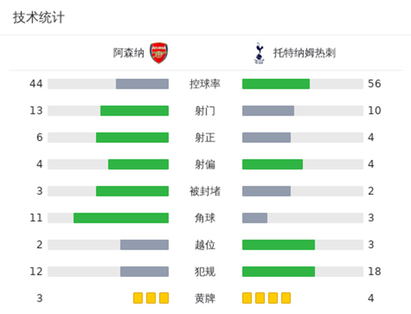 关键事件: 第25分钟,萨卡禁区右侧起脚兜射,罗梅罗解围不慎将球踢进自家大门,阿森纳1-0热刺!