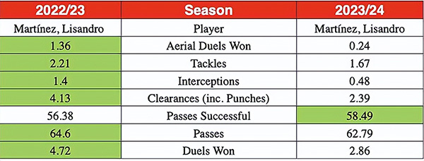 数据证实,本赛季的利马比起去年有了明显下滑。舒梅切尔说:「曼联现在的问题,在于球员过于个人化。例如马丁内斯,他试图成为英雄,阻止对方。你可以观察比赛中,他会将自己置于门将正前方的位置。但他的防守选择,并不是最合适的。」
