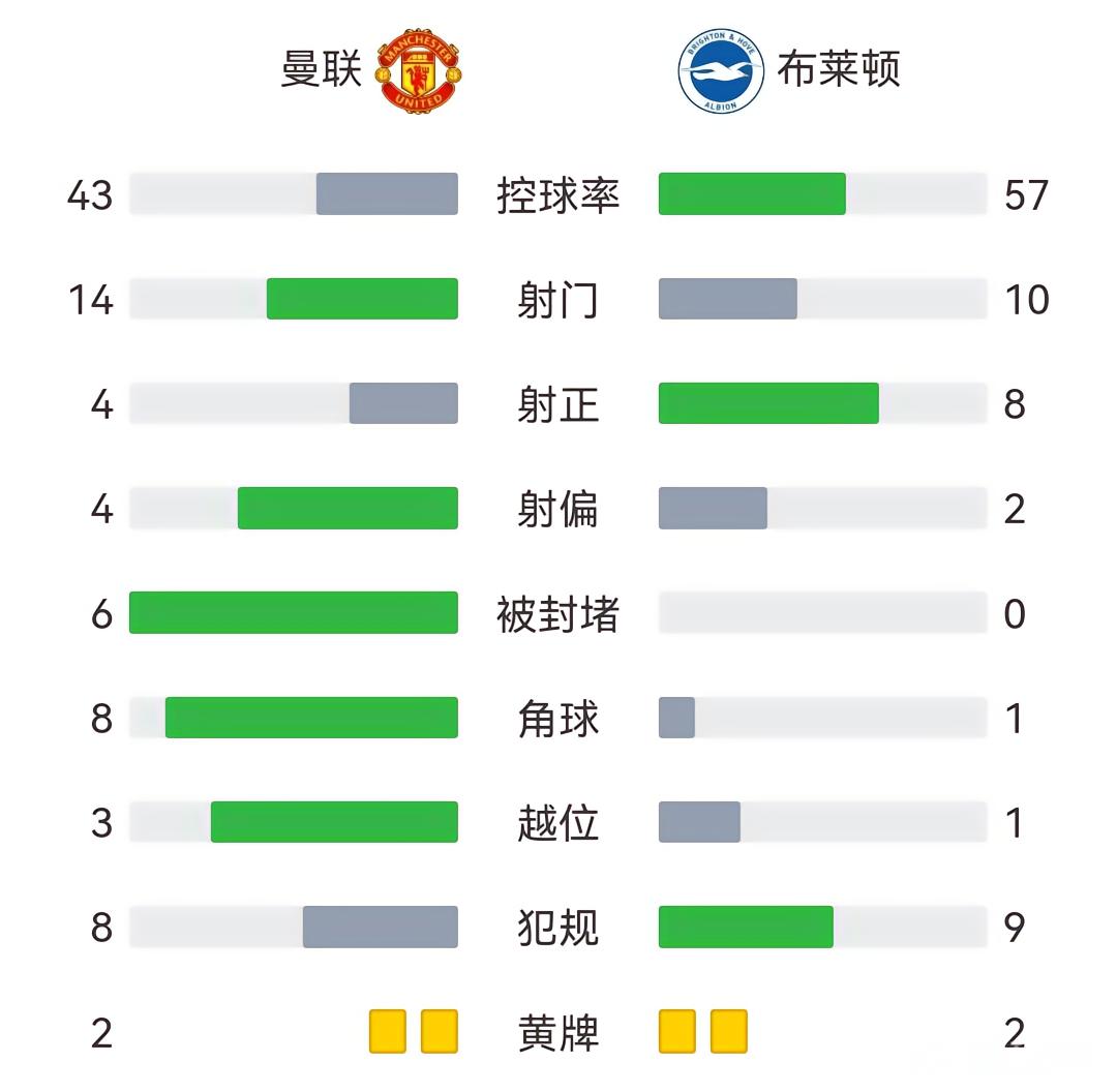 JRS直播网讯 :北京时间9月16日晚间22:00,英超联赛第5轮,曼联坐镇主场老特拉福德球场,迎战布莱顿,本场比赛主裁判为吉列特。上半场,维尔贝克攻破老东家球门,拉什福德射门击中立柱,霍伊伦破门被吹。下半场,格罗斯扩大比分,若昂-佩德罗破门,汉尼拔世界波扳回一城,法蒂错失单刀。最终,曼联1-3布莱顿。