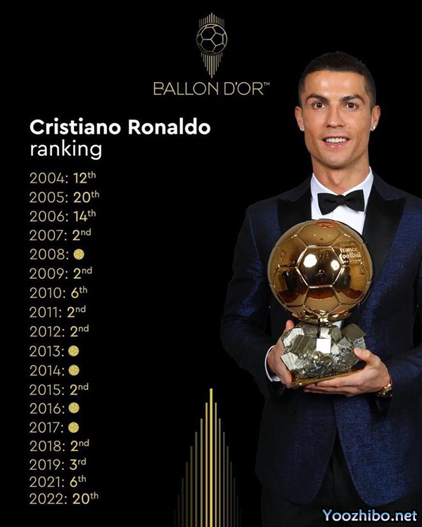 去年公布金球奖的时候,尽管C罗彼时在曼联的成绩不佳,但他依然榜上有名;在21-22赛季当中,C罗还是贡献了24球3助攻,并且对阵热刺和诺维奇完成了背靠背的帽子戏法,当然,总裁去年也只是位列20位,这是他在金球奖的历史最差排名了。