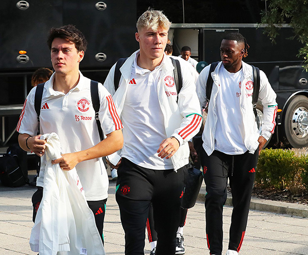 霍伊伦德自从以7200万英镑从亚特兰大转会加盟后,还是第一次出现在阵容中,此前他因应力性骨折隐患不得不休息。但这场比赛前,他被和球队一起在周六下午赶上了去伦敦的火车。滕哈格在赛前发布会上证实,20岁的丹麦国脚已经有足够的状态可以首发。