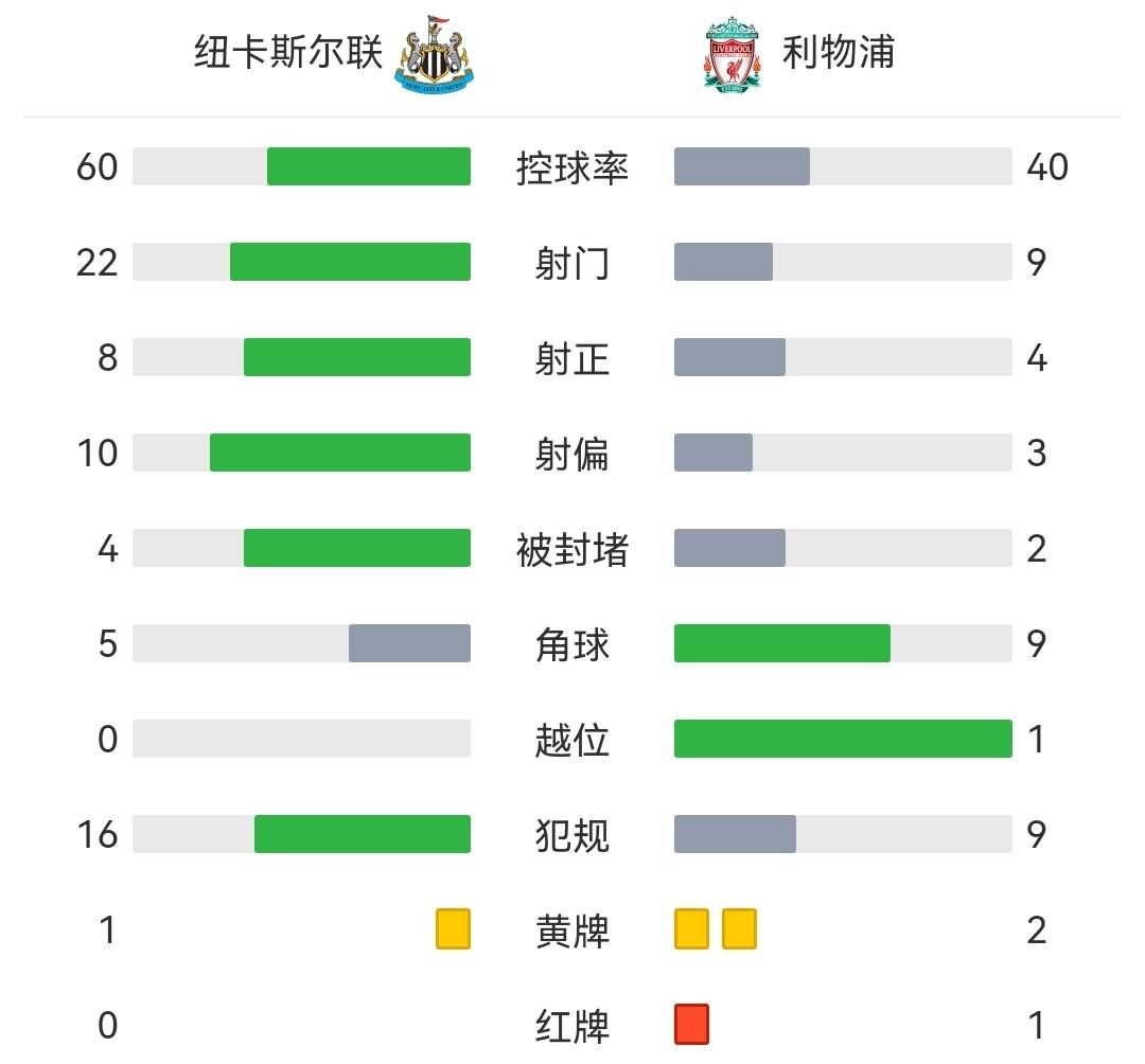 关键事件: 第24分钟,阿诺德后场停球失误送礼,戈登抢断单刀球冷静推射得手,纽卡斯尔1-0利物浦。