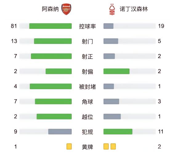 最终阿森纳主场2-1战胜诺丁汉森林。