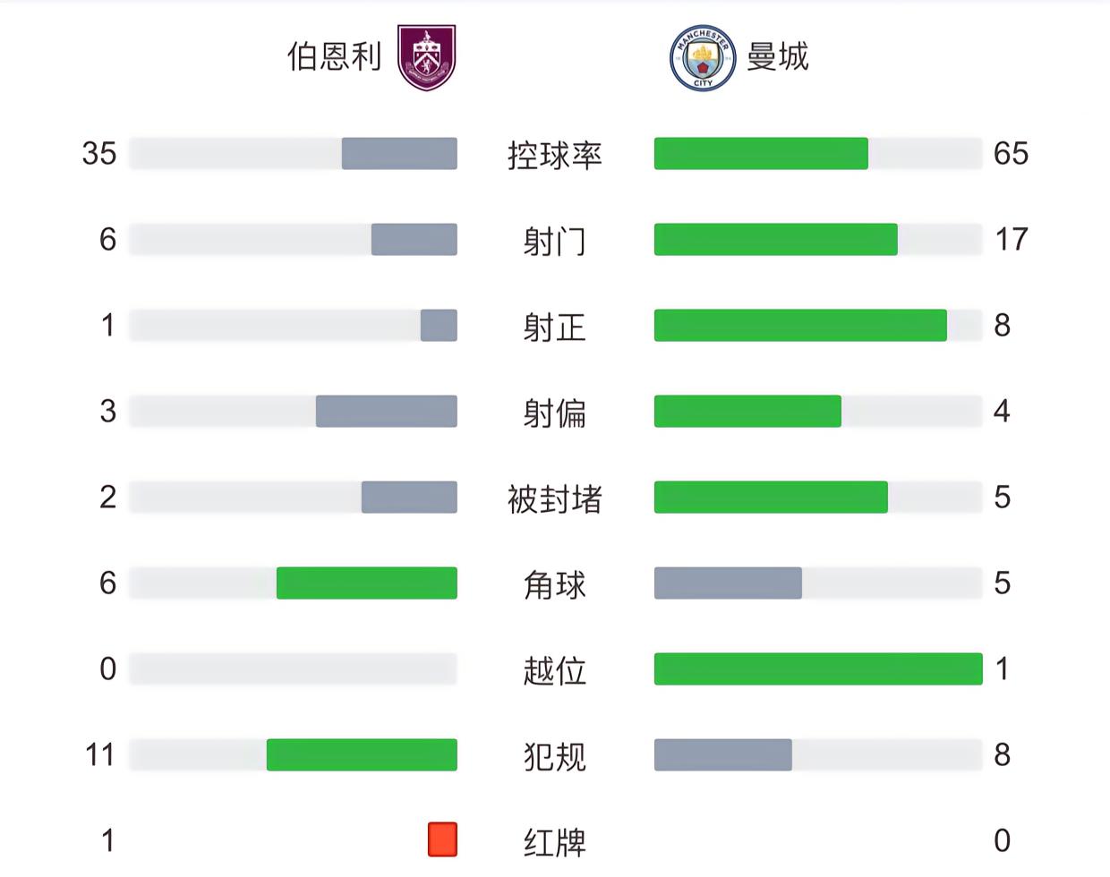 关键事件: 第3分钟,曼城的角球机会,德布劳内右路传中,罗德里头球摆渡到门前,哈兰德顺势垫射得手,伯恩利0-1曼城!