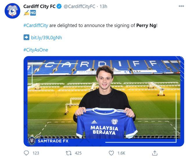JRS直播网1月20日讯 据英冠球队卡迪夫城官方消息,他们已签下英甲克鲁队的华裔球员黄添喜,双方签约至2024年6月,转会费未公布。