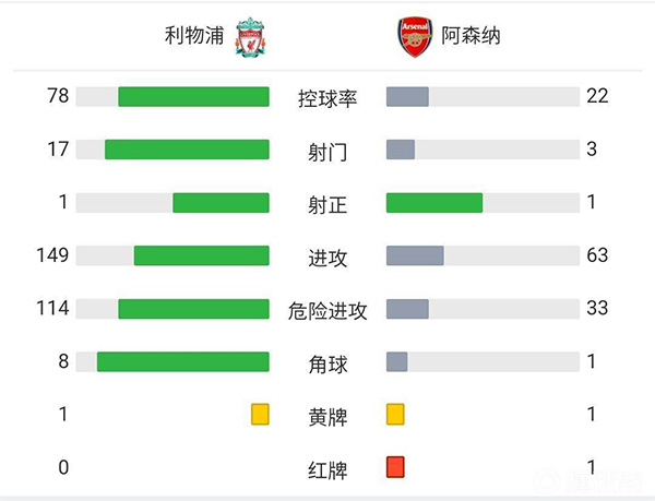 全场比赛结束,利物浦0-0阿森纳。