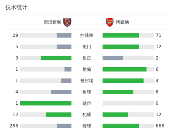 阿森纳1-3西汉姆联 本-怀特乌龙鲍文破门+造乌龙